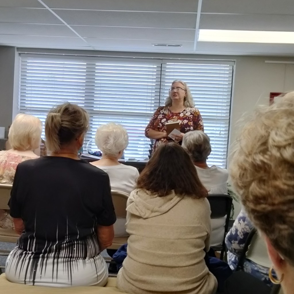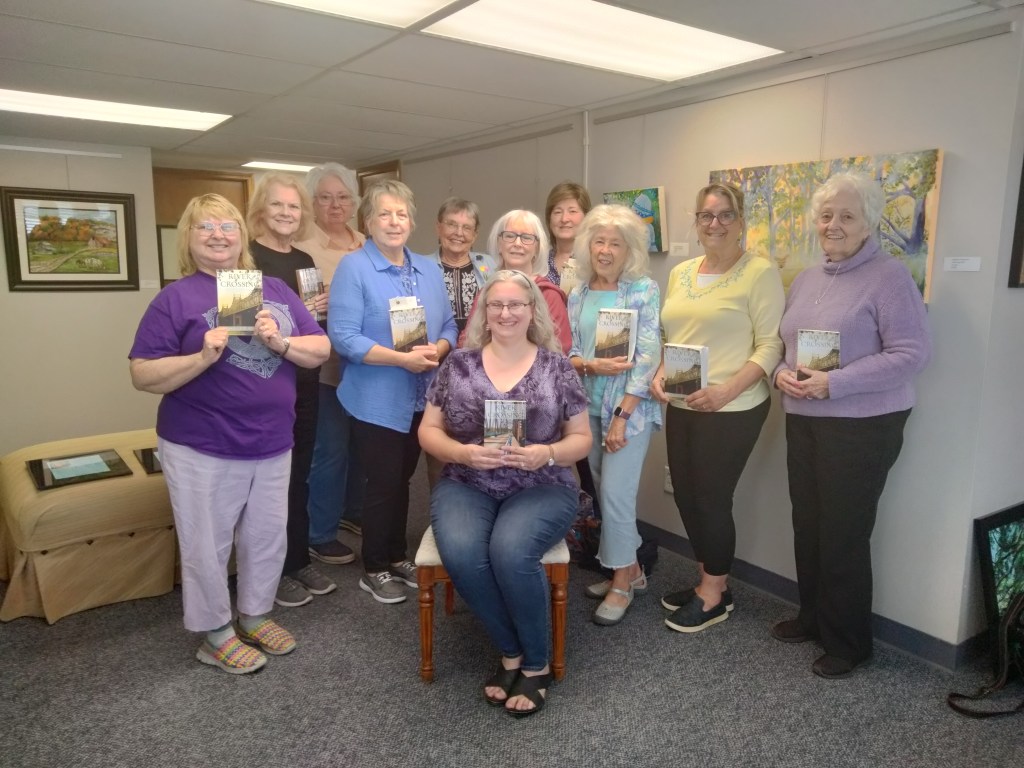 Speaking about River Crossing at the July reception for the Crossroads Arts Council.